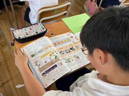 1組は、国語 自分の考えを伝え合おうの学習です。