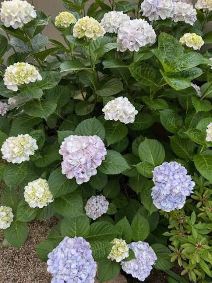 正門のそばに、紫陽花の花がきれいに咲いています。