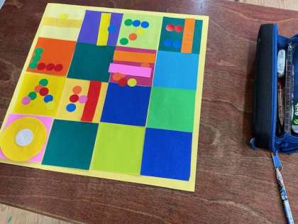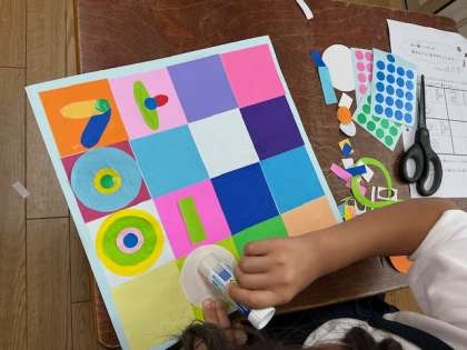 色紙やシールを重ねたり、