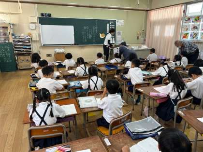 自分で正しく書き写すことにチャレンジしている1年生たち。