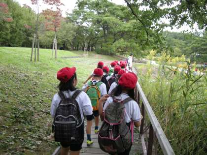 今週からとても涼しくなり、遠足には絶好のお天気となりました。1・2年生は長居公園までお出かけです。いっぱい楽しめたかな?