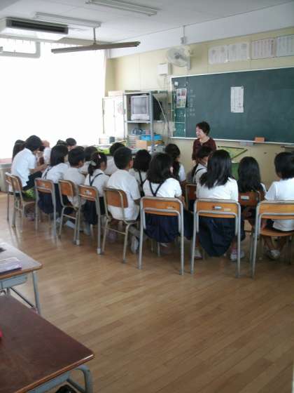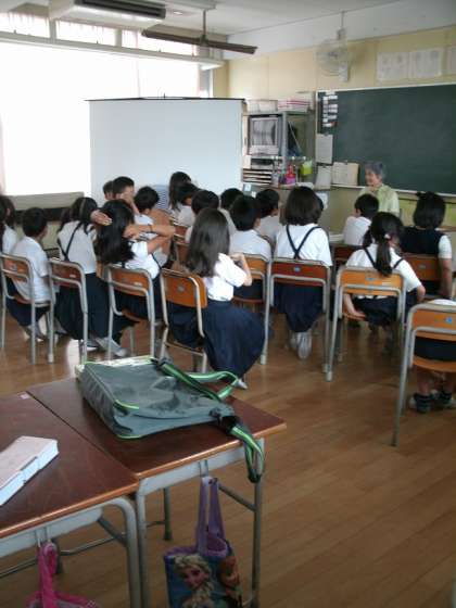 「ぐるっぽ」の皆さんにお越しいただいて、お話会を実施しました。一本のろうそくに静かに火を灯してお話の世界が始まります。子どもたちは、ぐるっぽの皆さんの臨場感あふれる語りにすっかり物語の世界へ引き込まれていました。