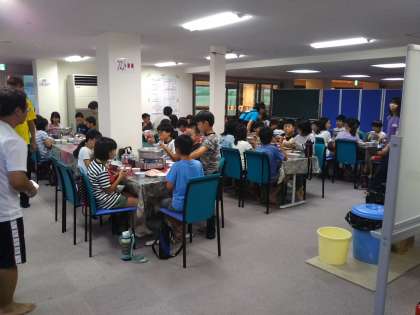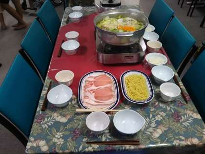 入浴を済ませ、今から夕食です。メニューは、豚鍋です。「いただきます。」
