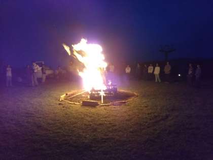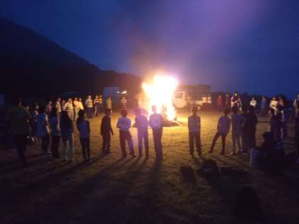 "遠き山に日は落ちて"の合唱でキャンプファイヤーが始まりました。