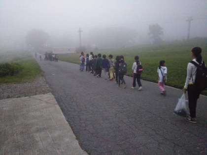 〔ナイトハイク〕に出発します。雲がなければ星空がキレイに見えるのですが、ちょっと期待できそうにありません。