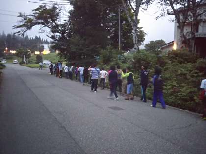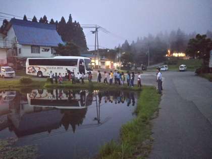 〔ナイトハイク〕星空は見えませんでした。けれども、ヒグラシや虫の声、カエルの声など、大阪ではなかなか聞けない音を楽しみました。