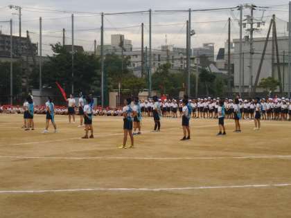 2学期がスタートしてから1ヶ月が経ち、10/1(日)の運動会に向けて、全体や学年で練習を行っています。本日も朝から、全体で応援練習を行いました。