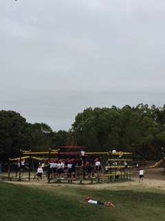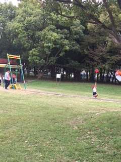 どんぐり拾いの後は、公園の遊具で遊びました。橘小学校だけの貸切状態。思いきり遊ぶことができました。