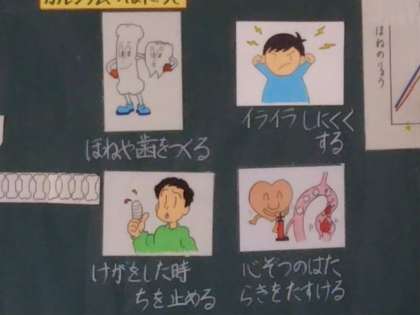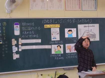 10月24日(火)2,3限 3年生が栄養についての学習をしました。栄養教諭の先生から「ほねをじょうぶにする食べもの」についていろいろなことを学習し、カルシウムをとることの大切さを知りました。