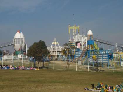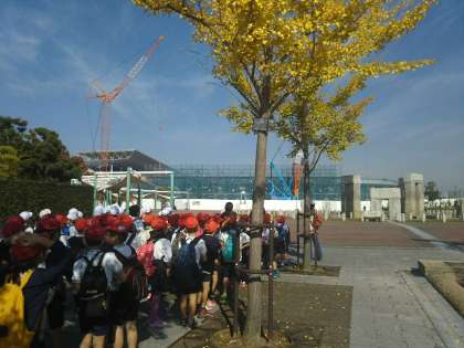 11月2日(木) さわやかな秋晴れになりました。花園中央公園に到着、おもいっきり遊具で遊びます。花園は2019年ラグビーワールドカップが開催されます。その準備が進められていました。