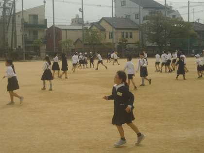 4月12日(木) 気候もよく、とても暖かくなってきました。昼休みは、運動場で”鬼ごっこ”や”一輪車”など、子どもたちは元気に遊んでいます。
