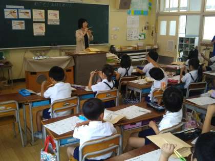 6月8日(金)2,3限 栄養教諭に来ていただき、2年生対象に栄養指導(めざせ!おはしめいじん)を行いました。