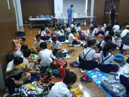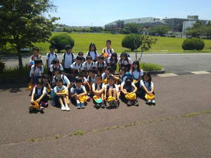 今日はあまりにも暑かったので、昼食は浄水場のご厚意で、会議室で昼食をとりました。帰りは柴島浄水場の隣にある、水道記念館をバックに集合写真を撮りました。