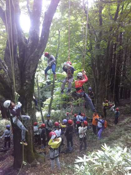 14時20分〔ツリーイング〕 だんだん要領がわかってきて、高いところまで上っています。