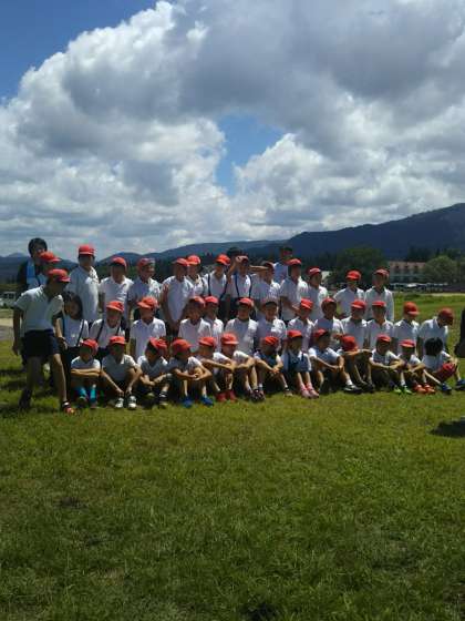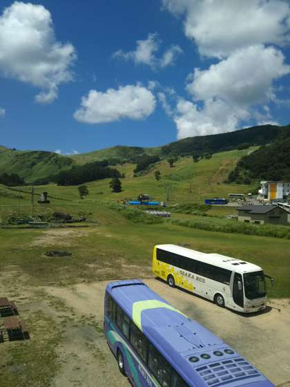 13時10分〔宿舎出発〕宿舎をバックに記念写真を撮って、帰路につきます。