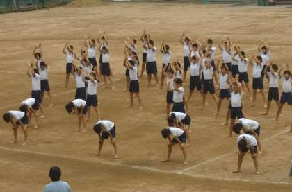 天候の悪い日が続いていたため、運動会の練習も運動場ですることができませんでした。今日は曇り気味ですが、運動場を使っての練習をしました。