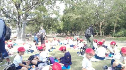 天候にも恵まれ、自然史博物館の見学や秋みつけとして木々を観察したり、どんぐり拾いをしました。自然を肌で感じることができました。また、お昼には子どもたちは、お弁当を美味しくいただいていました。