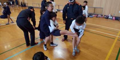 災害発生時に、どのように対処すればよいのかを体験的活動を通して学ぶことをねらいとして、毛布担架・煙体験・起震車・搬送法・座学、防災クイズを体験しました。
