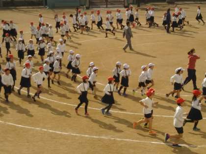昨日に続いて2限後の休み時間に、全校児童が運動場をかけ足で走りました。天候も良く、気持ちの良いランニングができました。寒さに負けない体をつくりましょう。