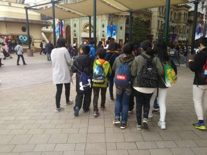 6年生が卒業遠足でユニバーサルスタジオに来ています。あいにく雲行きはあやしいですが、ケガなどしないよう、おもいっきり楽しみましょう。
