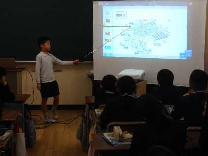 4年生の社会科の授業で、タブレット端末を活用し調べたことを発表しました。”大阪港””新大阪駅””関西国際空港”の中からテーマを決め、ペアになり調べ、考えました。緊張しながらでしたが、どのペアも素晴らしい発表でした。