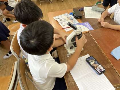 子どもたちは、顕微鏡のピントを上手に合わせていて、