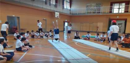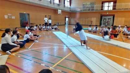 夏休みが開けてからは、体育館でマット運動に取り組んできました。今日はその集大成。3つの技を選んで繋ぎ一つの技として作り上げ、発表会を行いました。すべての技に丁寧に取り組んできた成果もあり、発表を見ている人達からの拍手はなり続けていました。