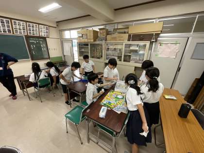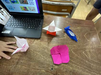 タブレット端末で検索した折り方にチャレンジしている図画工作クラブ。