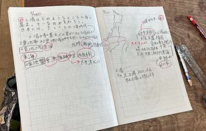 それぞれの規模や果たしている役割の違いを話し合い、ノートにまとめていました。