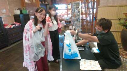 お風呂からあがり、1階にあるお店でたくさん悩んで買っている様子が見られました。