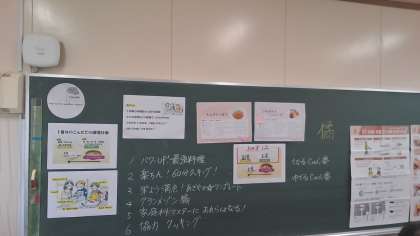 6年生は、班で考えた主菜(肉・魚・豆などを使ったおかず)と