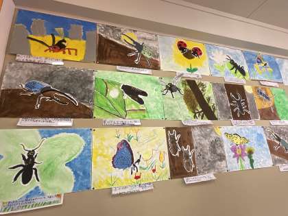 図画工作の時間に制作していた昆虫の絵が完成し、