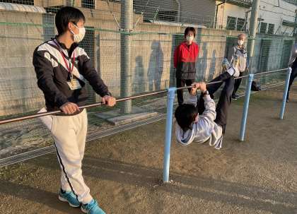 遊びの中から、鉄棒に必要な筋力や感覚をつかむポイントを