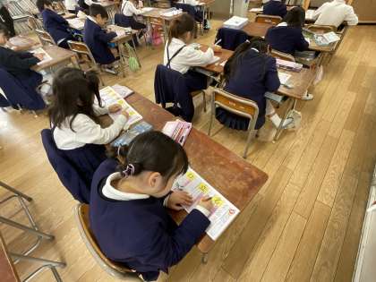 2組では、「立」という漢字の学習をしました。「たつ」という読み方だけでなく、「起立!」のように、