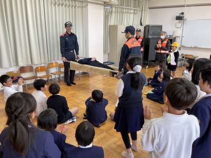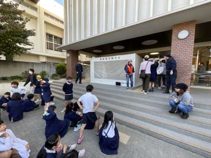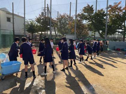 橘小学校で初めてバケツリレーの体験を取り入れました。