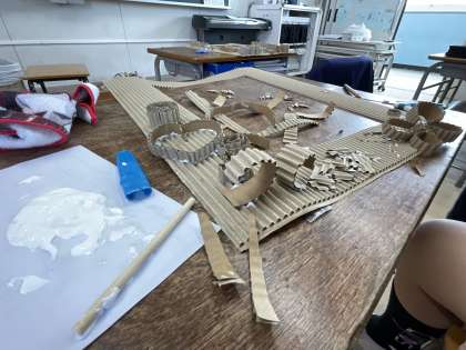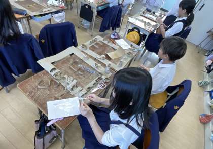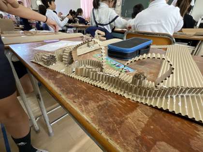 段ボールで作る額縁に挑戦していました。