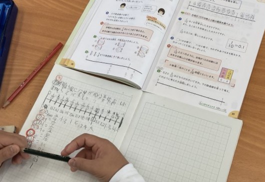 分母が10の分数と小数の関係を調べる学習をしていました。