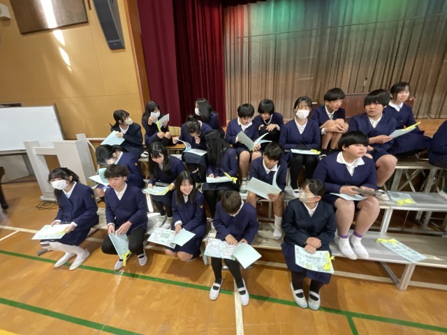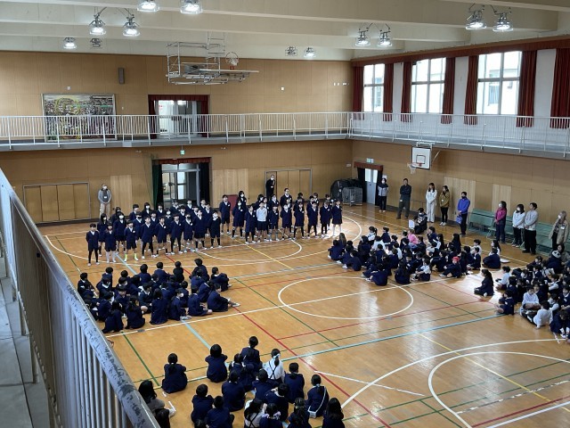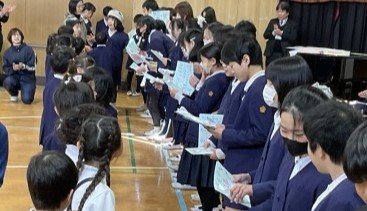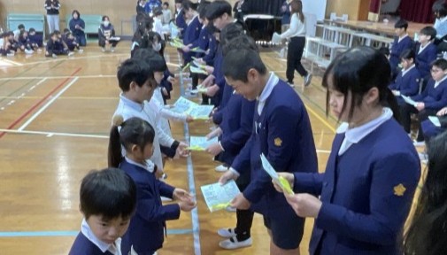 在校生みんなで書いたメッセージカードを、1年間お世話になったたてわり班の6年生へ渡しました。