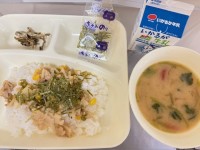 ごはん 牛乳 鶏肉のチリソース焼き 焼き豚のスープ ツナとさんどまめのオイスター...