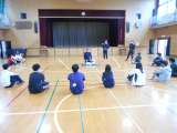 体育大会に向けて今日の放課後も応援団が練習しています。 にがりまきのため運動場が...