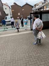 登校時間に地域の方々が「社会を明るくする運動」の一環として、児童に朝の声かけとと...
