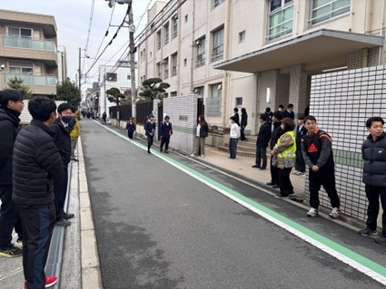今日は給食を早めに食べてから、西成区民センターへ行き、実践型避難体験「挑戦!NH...