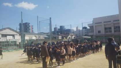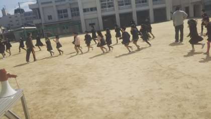 「放送や非常ベルが鳴らないときもあるので、静かにして話を聞く」など大切なことを確かめました。よくできていました。