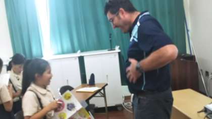 C−NETのマット先生の時間です。今日は、[Hollow!][How are you?][I'm fine]?][I'm sleepy.]などを学習しました。(やあ! 元気ですか? 元気です。ねむいです。おなかがすきました。)などを学習しました。