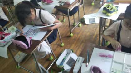 よく見て描いたあとは、「この色だ!」という色をつくって、ていねいに彩色していきます。