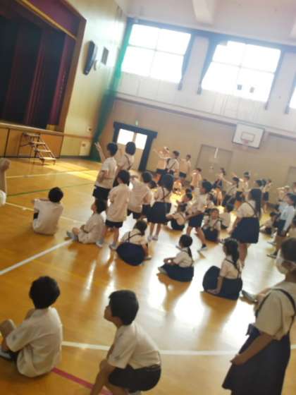 1回目の優勝は、5月15日の児童集会のじゃんけん列車で、優勝した1年生児童がなんとまた優勝しました。
