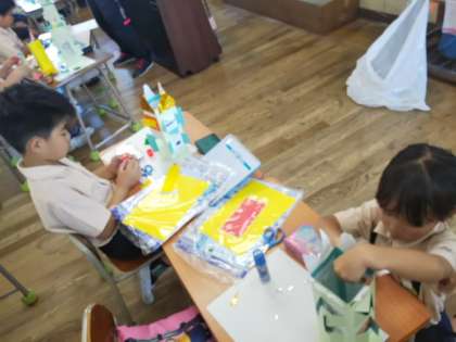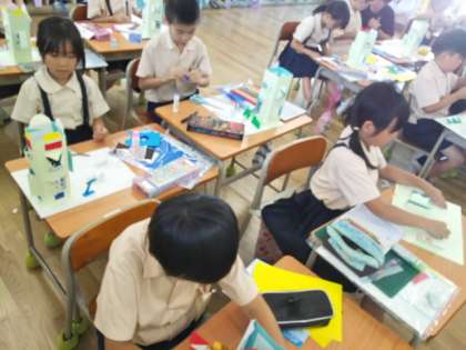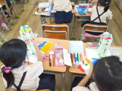 2−2の図工です。「まどをひらいて」という工作をしています。
