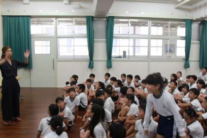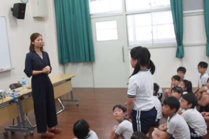 アーティスティックスイミング(少し前までシンクロナイズドスイミングと呼ばれていた)で、数々の世界大会やオリンピック北京大会に出場された橘 雅子(たちばな まさこ)先生の出前授業です。