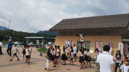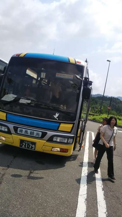 第2休憩地点道の駅まほろばです。ハチ高原への林間バスがいっぱいです。