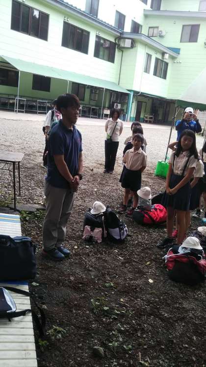 開所式です。宿舎の方に元気よくあいさつをしました。